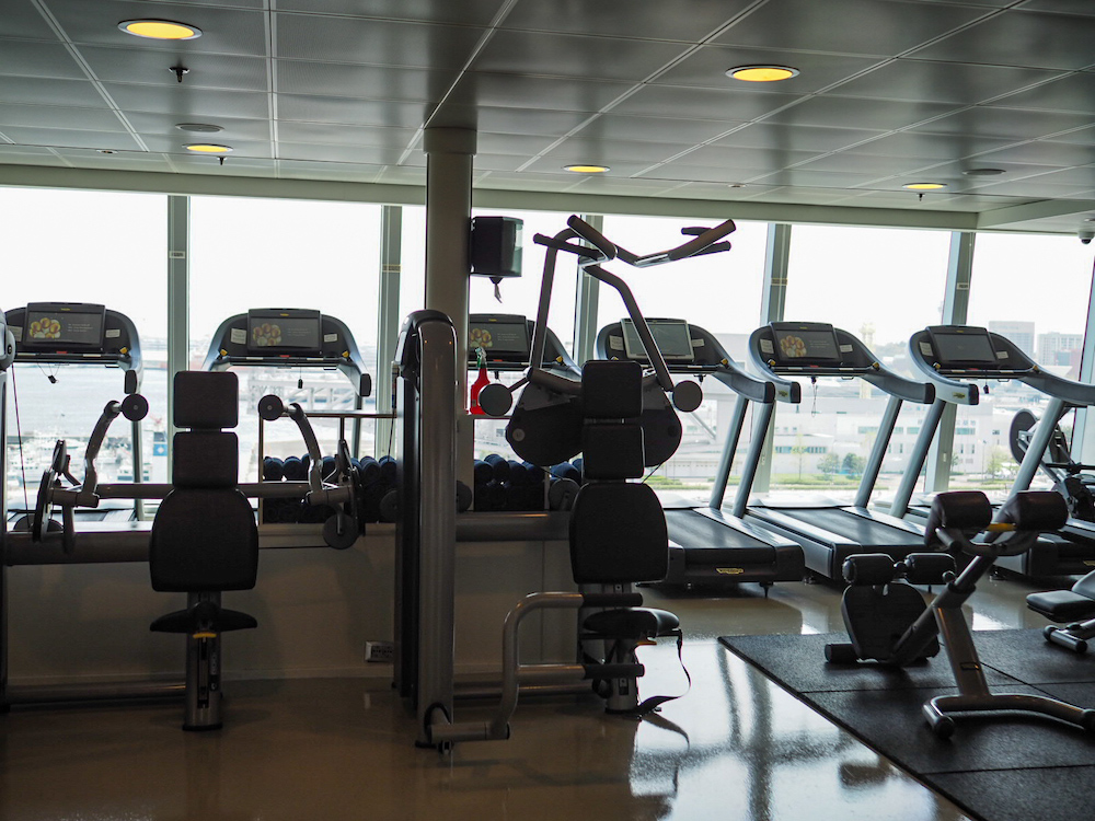 船内にはもちろんフィットネスジムも完備。またジムの隣にはスパもあります。