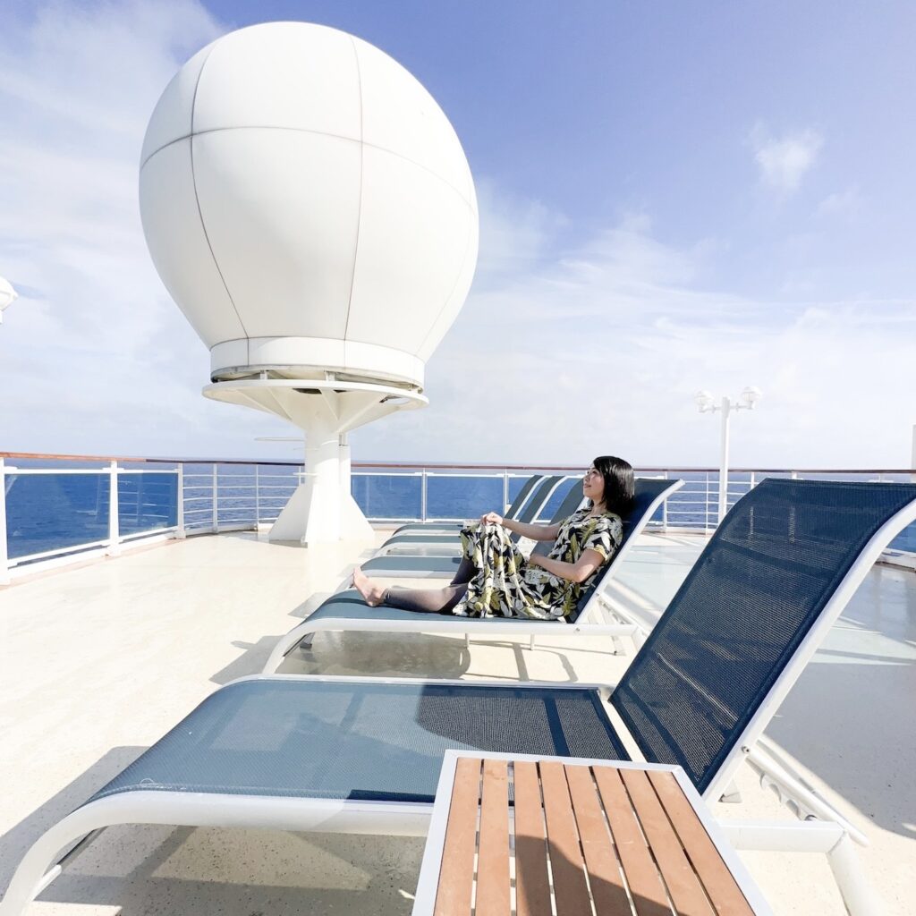 私は、船首にある、屋外のリラクゼーション・スペース・サンクチュアリで半日静かな空間でゆっくり楽しみました。