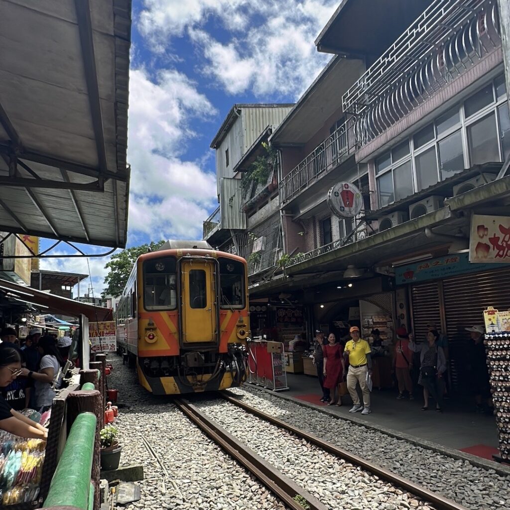 ローカル電車が、ギリギリの幅の街中を走り抜けるのが十分!電車は、頻繁に来ないので、(だいたい1時間に1ぽんくらい。)その線路の上で、願いを書いたランタンを飛ばすのが十分観光の醍醐味!