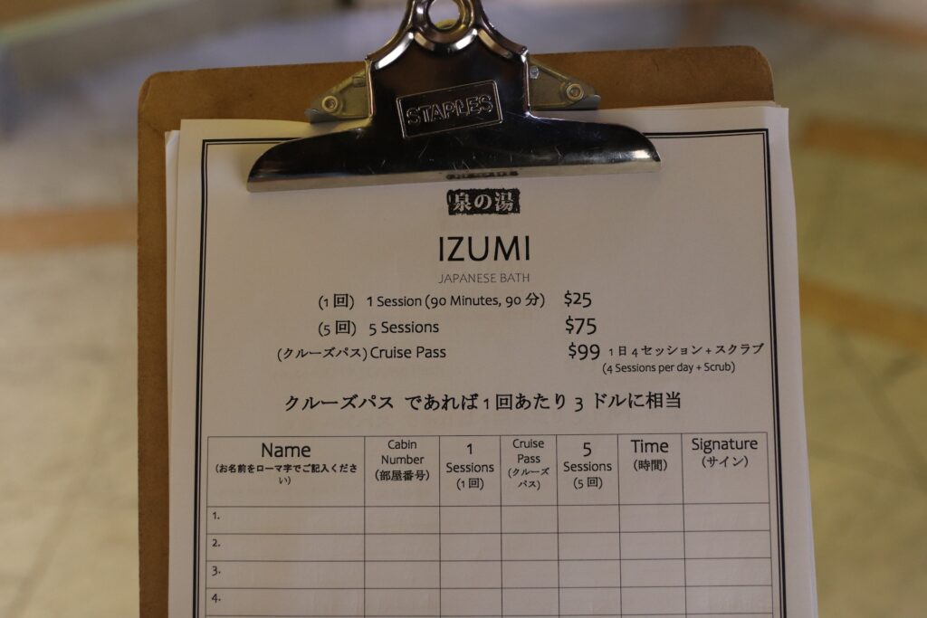 寝る間も惜しんでクルーズ旅を満喫している私の元気の源は、きっと展望浴場「泉の湯」のお陰です。
