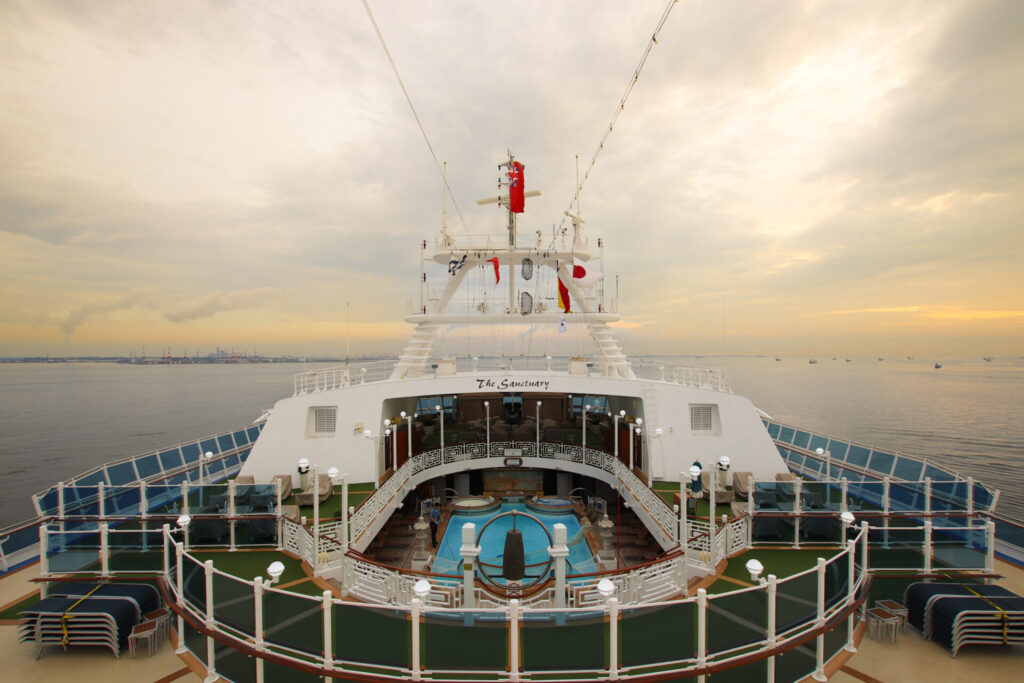 プールにつかりながら、美しい出港シーンをのんびりと眺める贅沢時間が何より大好きです。