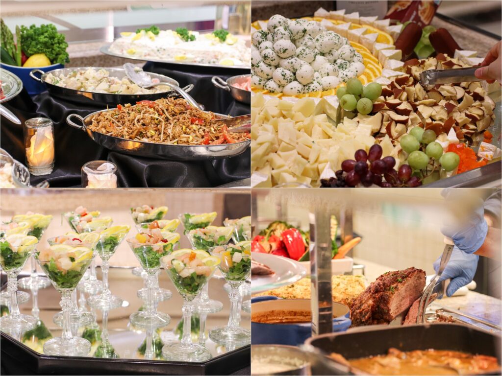 肉や魚料理といったボリュームのあるメニューだけでなく、サラダや果物、チーズ、ご飯、スープなどもあります。