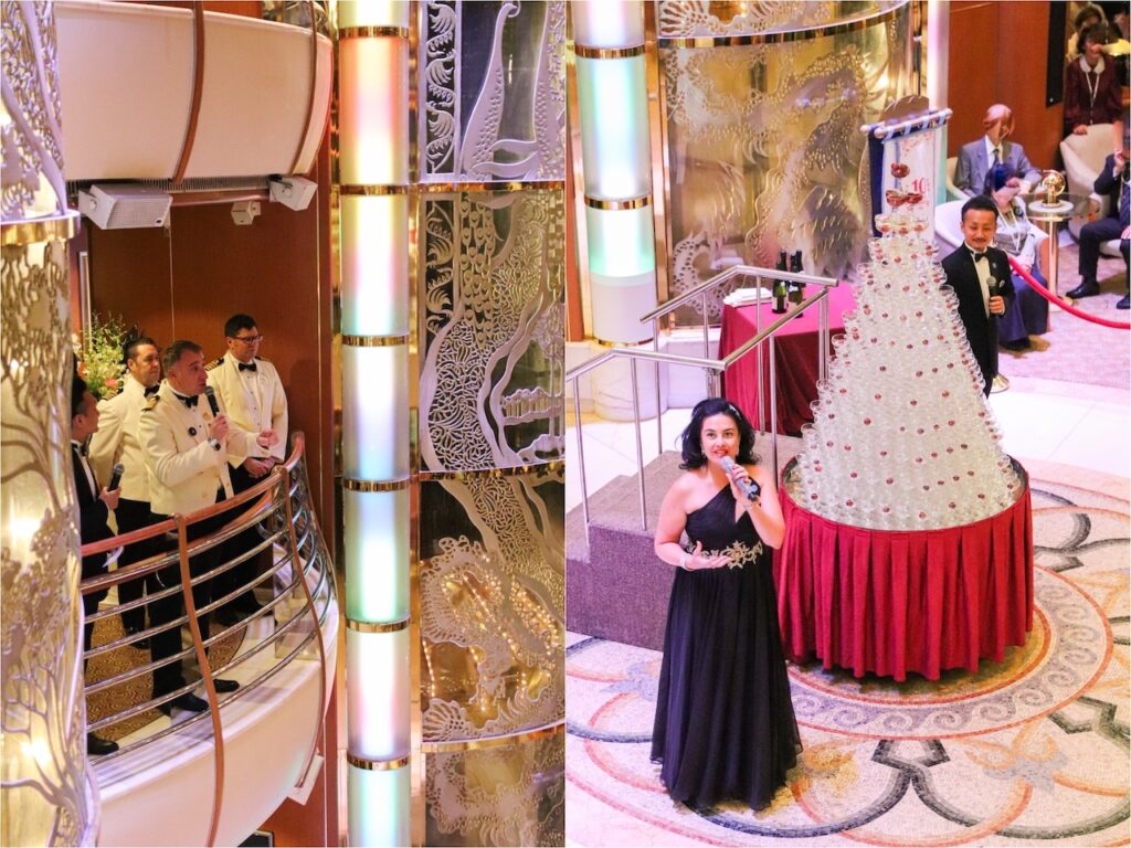 全てのゲストが参加出来る「船長主催のウェルカム・パーティー」は、フォーマルデーの 18 時以降に、デッキ中央の吹き抜けエリアで行われます。