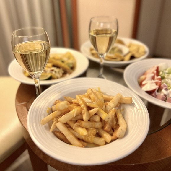 クルーズでは船内の食事は全て乗船料に含まれています。長い航海中飽きないように選択肢もいろいろでその時の気分で選べます。