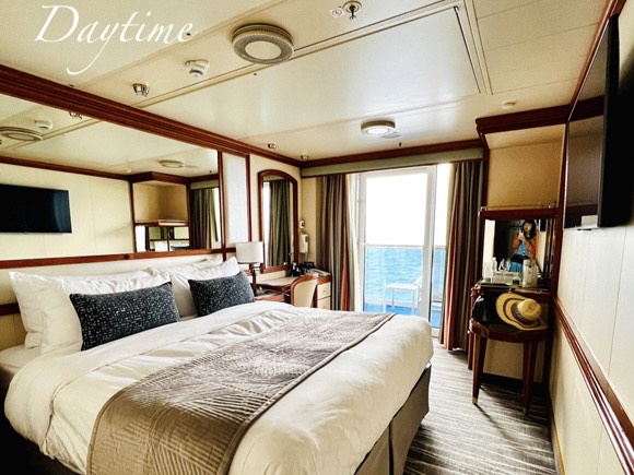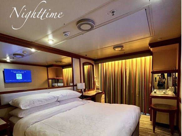 客室専任のスチュワードがいて毎日2回お掃除してくれます。朝と夜でベッドメイクが変わるんですよ。