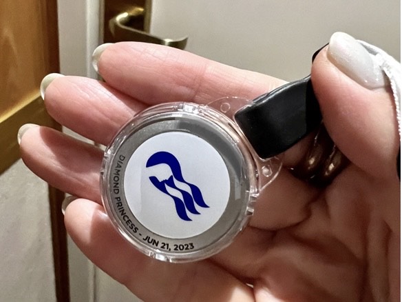 これもダイヤモンド・プリンセスならではのシステム、乗船時に渡されるメダリオンでセンサーが認識してお部屋に近づくと開錠されるんです!