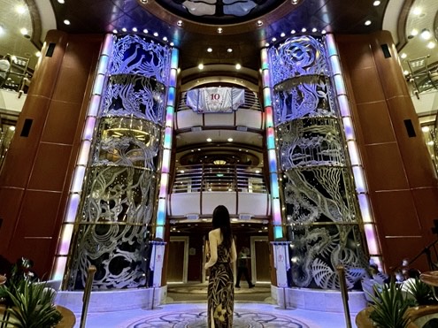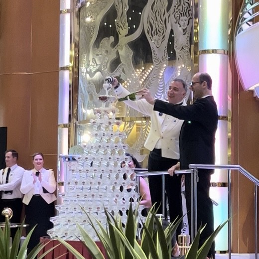 日本語のイベントリストに船長主催の乗船歓迎祝賀会とあるのがダイヤモンド・プリンセス名物の「ウェルカム・パーティー」いわゆるグラスタワーが登場するイベントですね。