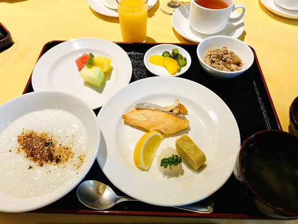 さすが日本発着なので和朝食があるのも年配の方には嬉しいですね(私も嬉しかった)お粥も選べましたよ。