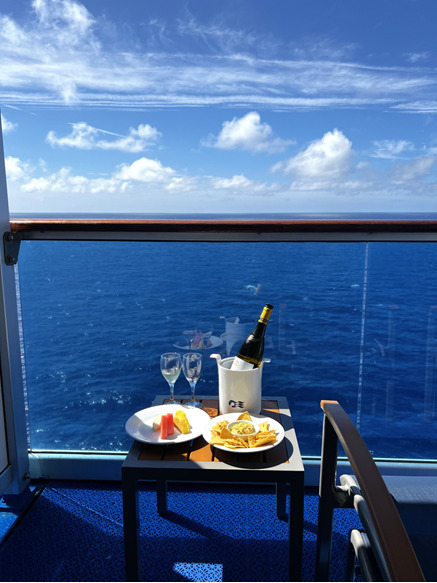 バルコニー付きだとバスローブで部屋から朝日や夕日を眺められるし、ルームサービスで頼んだ朝食やスナックを水平線を眺めながらバルコニーで食べるのも素敵な体験でした。