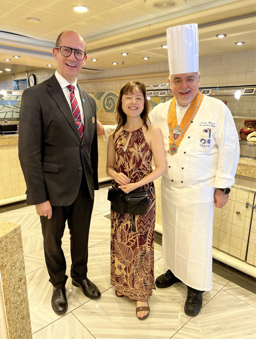 何千人もの食事を作るクルーズ船の厨房がどうなっているのか興味深々だったので、実際の巨大なキッチンを見学させてもらえて感激でした。
