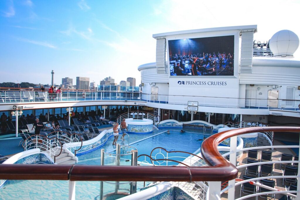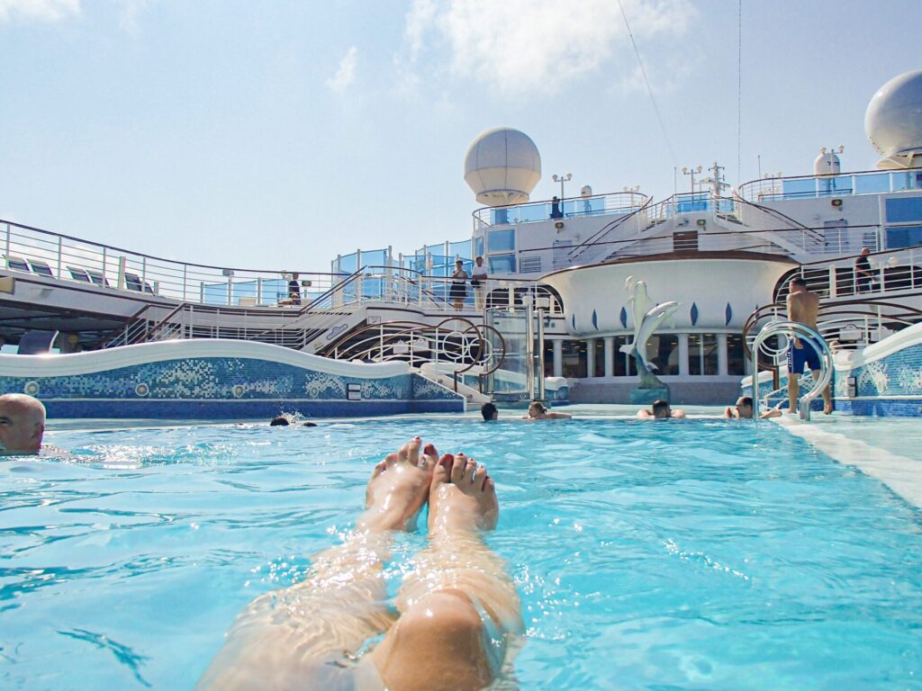 まずは憧れのクルーズライフと言われればこれを思い浮かべる人も多いでしょう、船上プールです!