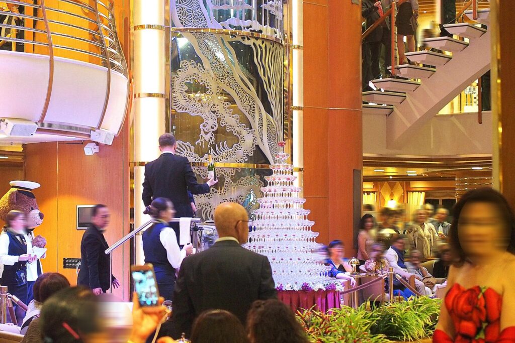 たとえ奮発して良いホテルに泊まったとしても、こんなパーティーに参加するような機会というのはそうそうなく。クルーズでないとなかなか味わえない体験ですよね。