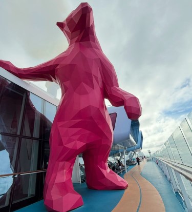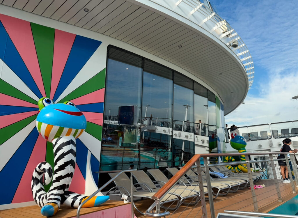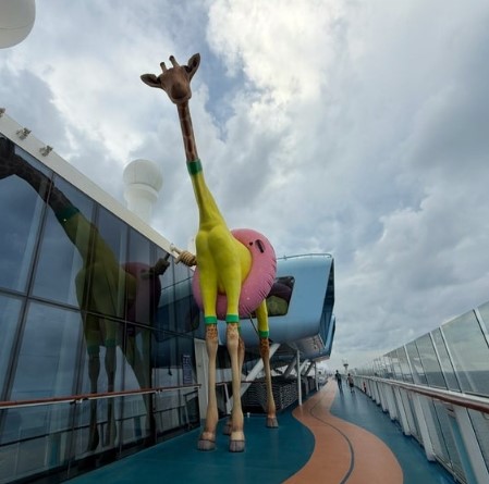 ほかにも、前回の客船と違う点があって、「クァンタム・オブ・ザ・シーズ」にはピンクのクマのオブジェがいたのですが、「アンセム・オブ・ザ・シーズ」には、首を高く伸ばしたキリンのオブジェが設置!