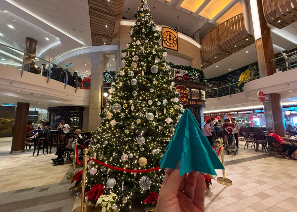 折り紙でクリスマスツリーをつくるイベントに参加したのですが、英語がわからず困っていると隣の乗客が優しく教えるという、あたたかい交流の時間もありました。