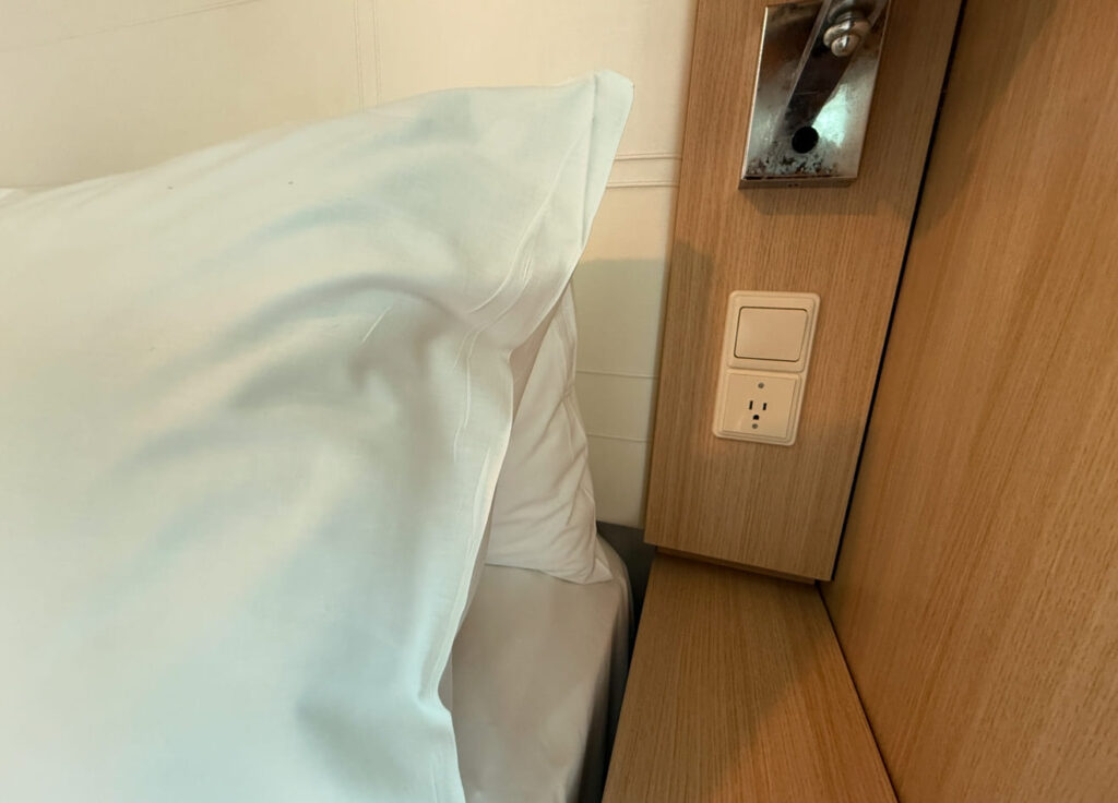 宿泊したバルコニールームは、広々としたベッドとふかふかのマットレスで旅の疲れをしっかり癒してくれます。