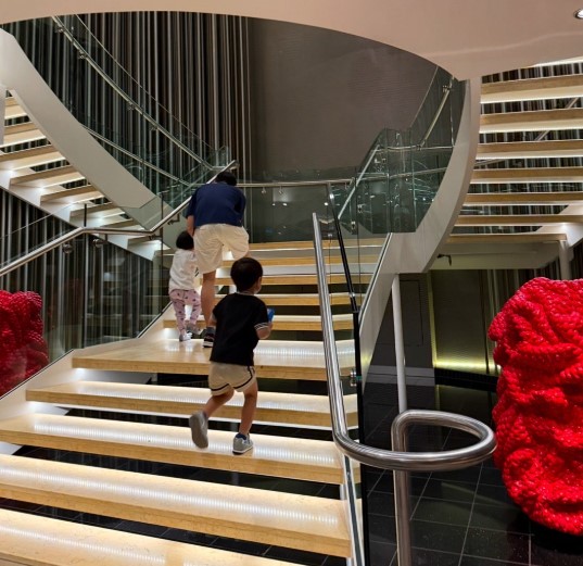 今回は13階の高いフロアなので、更に眺めが良く水平線まで見渡せます。14階にはプールやビュッフェがあり、簡単にアクセスできるのが本当に快適!子供をプールに連れて行くときや、ちょっと小腹が空いたときにエレベーターを待たずにサッと行けるのは、かなり助かりました。