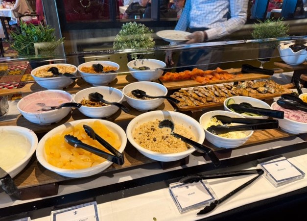 着席すると、前菜、メイン、デザートが好きなだけ選べるという贅沢なメニューです。(アルコールは有料)