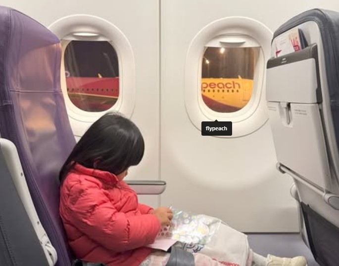 今回搭乗したPeachの機体は、足元が少し広めの作りになっていて、快適に過ごせました。機内食ではカップラーメンやたこ焼きが販売されていたので、夜ごはんにいただきました。お腹いっぱいになったら、少しずつ機内が暗くなっていき、すんなり夢の中へ…。