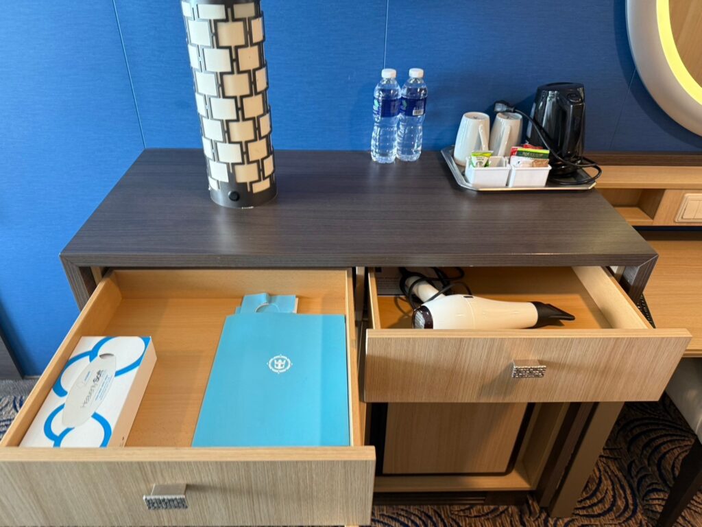 クルーズ乗船は3回目ですが、いつもバルコニー付を選ぶほどハマっています。バルコニーには、椅子や机もあるのでのんびりと食事を楽しんだり、コーヒーを飲みながら海を眺めてぼーっとしたりと使い勝手抜群です!
