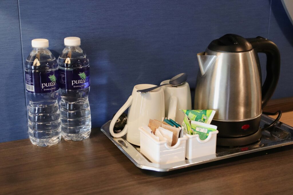 最初の乗船時に、一人あたり1本の無料のミネラルウォーターが置かれています。