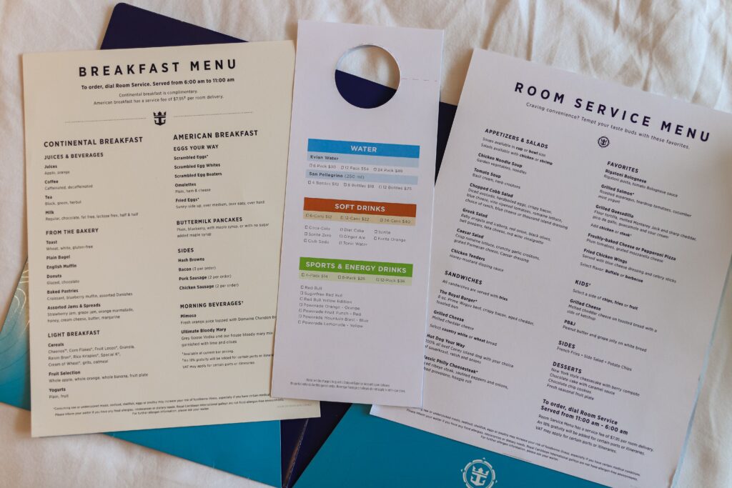 スキンケア類や歯ブラシ、そしてパジャマやスリッパなどは用意されてないことから、初めて乗船される方は、ロイヤル・カリビアンによる「クルーズガイド」からも重ねてご覧ください。