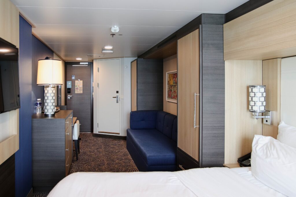 私が、4泊5日のペナン・プーケット・シンガポールクルーズで宿泊していたのは、部屋のなかが18.3平方メートルの海側バルコニー客室タイプ。6デッキの船首左舷側にある【客室番号:6126】で、「アンセム・オブ・ザ・シーズ」の客室のなかでも、一番多い客室タイプです。