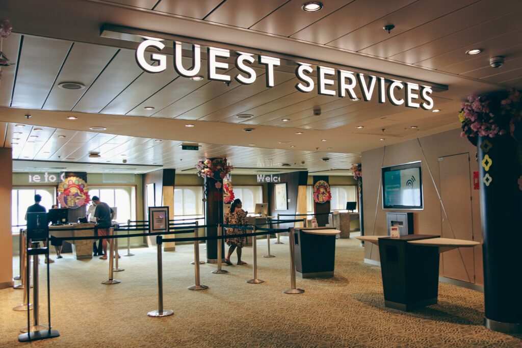 これは困ったな。ということで、デッキ4の中央にある総合案内所「ゲストサービス」へ。