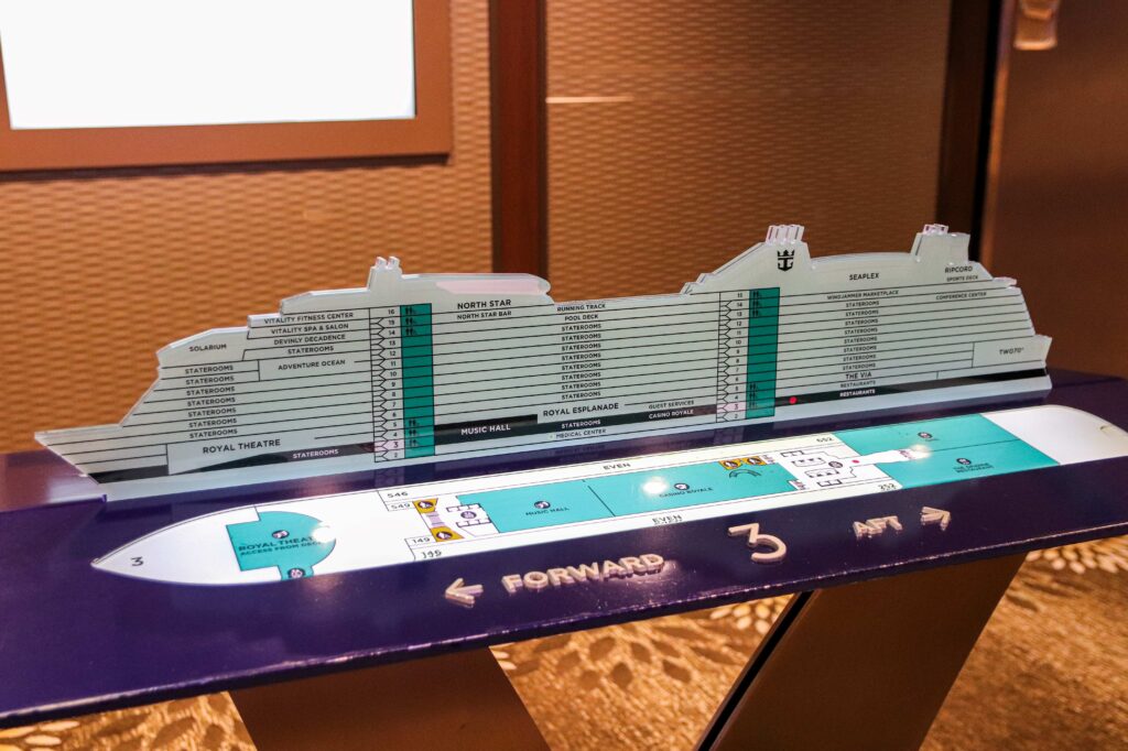 実はこれ、よくあるようでいて、あえてあまり無い客船もあったりするので、「アンセム・オブ・ザ・シーズ」では迷子になることも少ないと思います。