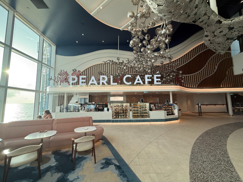 このカフェは、乗船中何度も通ったお気に入りのカフェ。自分で好きなものをトッピングできるベーグルが食べられます。