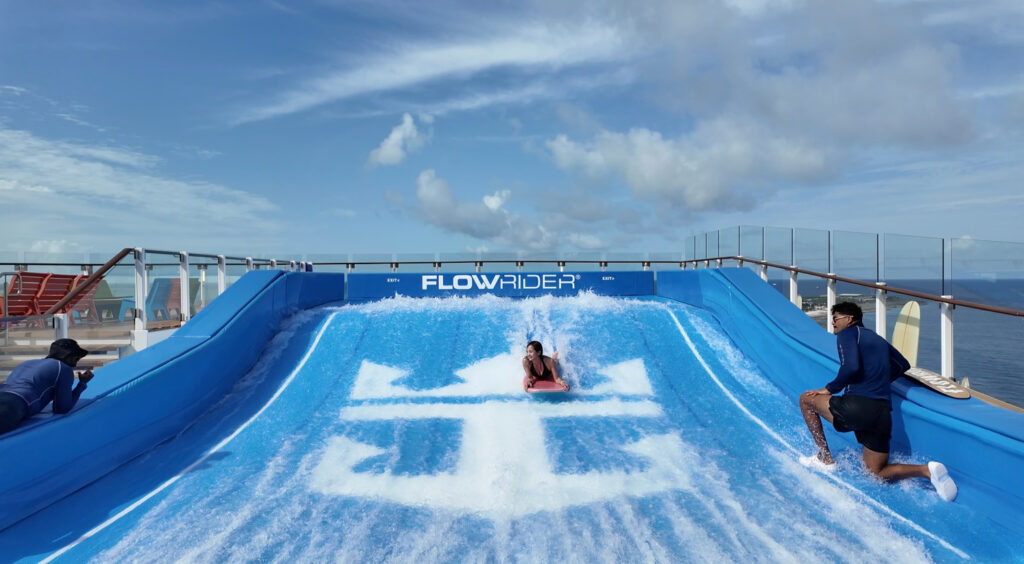 また、寄港地に停泊中は、ウォータースライダーや、フローライダーが比較的空いているので、船で遊びたい人はチャンスです。