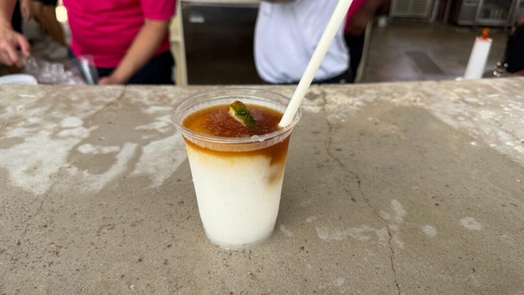 おしゃれなプールバーもあったので、ピニャコラーダ (約10ドル) を注文。