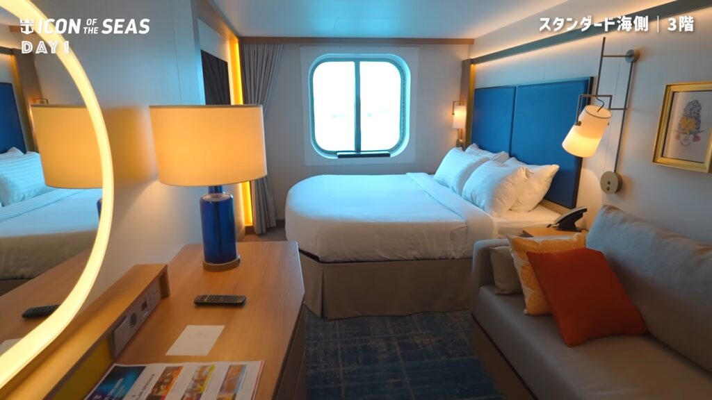 今回は「海側窓付き客室」に滞在しました。当初は一番下のランクの部屋を予約していましたが、ロイヤル・カリビアンのビット制オークションを利用し、最低金額の200ドルで海側の客室にアップグレードされました。