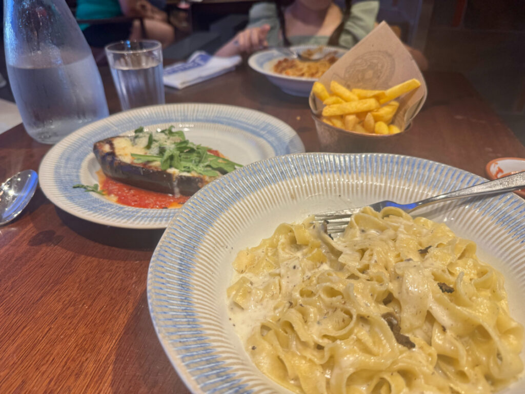 無料の飲食会場にもパスタはありますが、「ジェイミーズ」のパスタはさらに美味しく本格的で、娘もペロリと完食しているほど。
