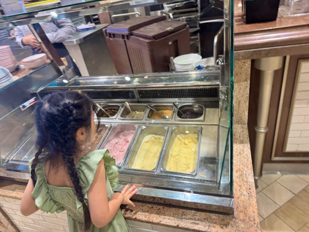 船によって無料で楽しめるお食事のジャンルや会場は様々ですが、「オベーション・オブ・ザ・シーズ」のご飯は想像以上にとても美味しく、お米もあったりアイスも食べ放題で娘も大満足でした!