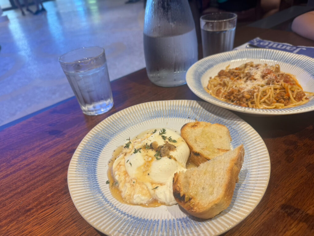 私は娘と「ジェイミーズ・イタリアン」へ行きましたが、日本では飲食店で食べられるところが少ないブラータチーズもあり大満足!