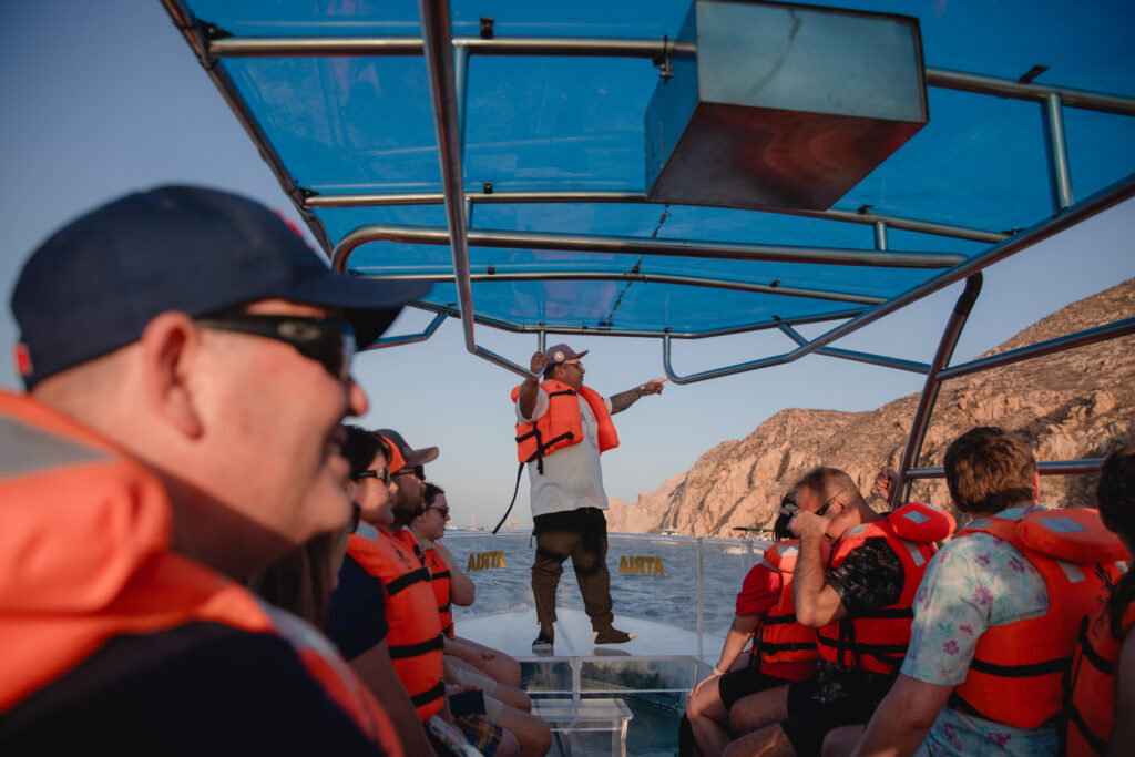 とっても海の綺麗なカボサンルーカス。船の自室のバルコニーからの景色で十分満足していたのですが、事前予約していたこともあり、夕焼けの海を味わおうとサンセットクルーズへ。