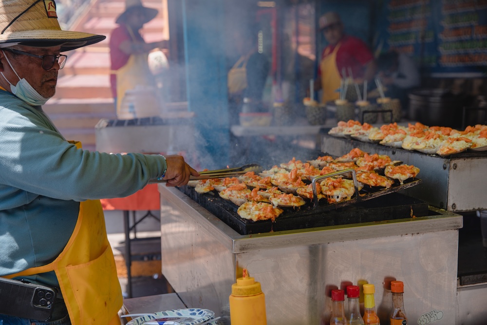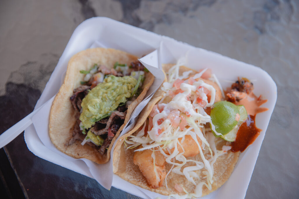 新鮮なシーフードが名物の場所では、タコスもシーフードが人気。