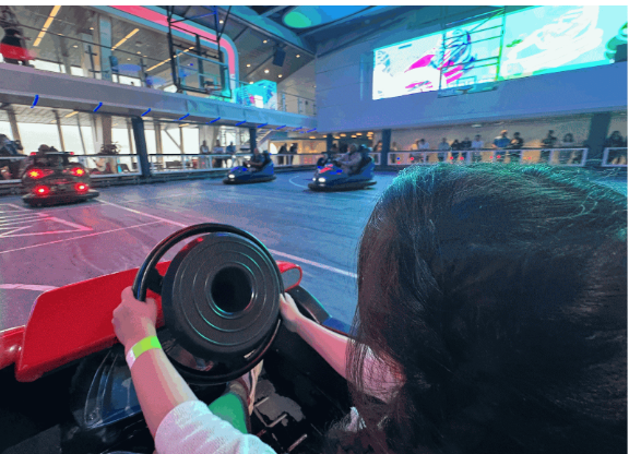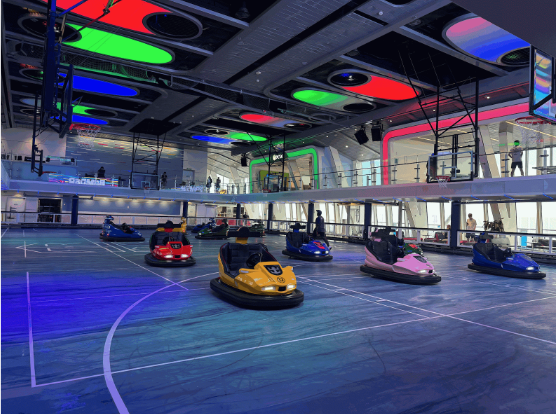 バンパーカー、バスケットボール、ローラースケート、卓球など、自由に体を動かせるスポーツスペース。