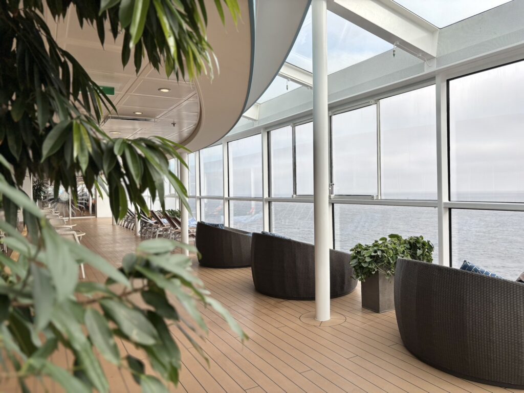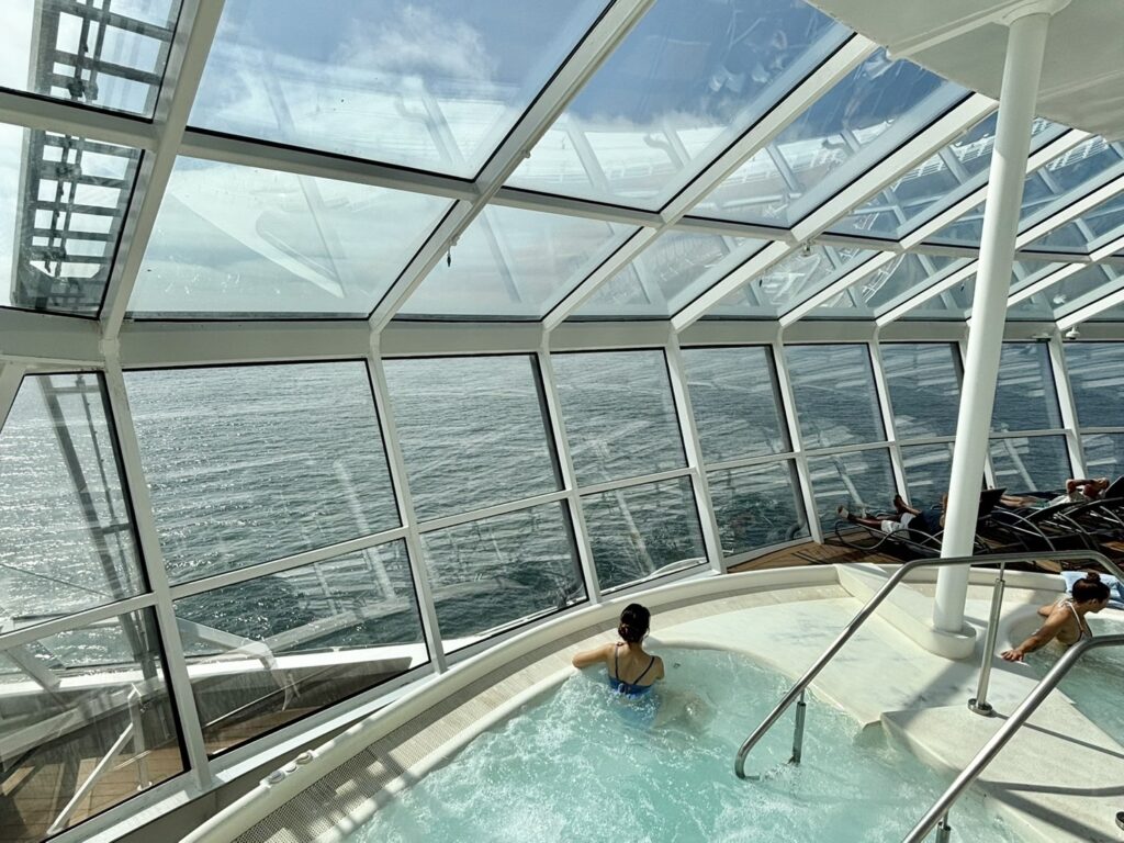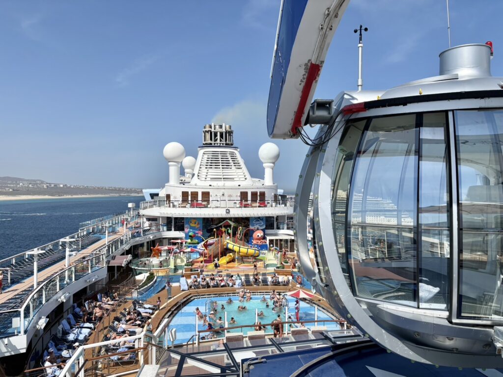 約90mの高さまで上がるだけでなく左右にも動くため、360℃の景色と船の全景を上から眺められる展望カプセル。こちらはなんと「洋上で一番高い展望デッキ」としてギネス記録にも登録されています。