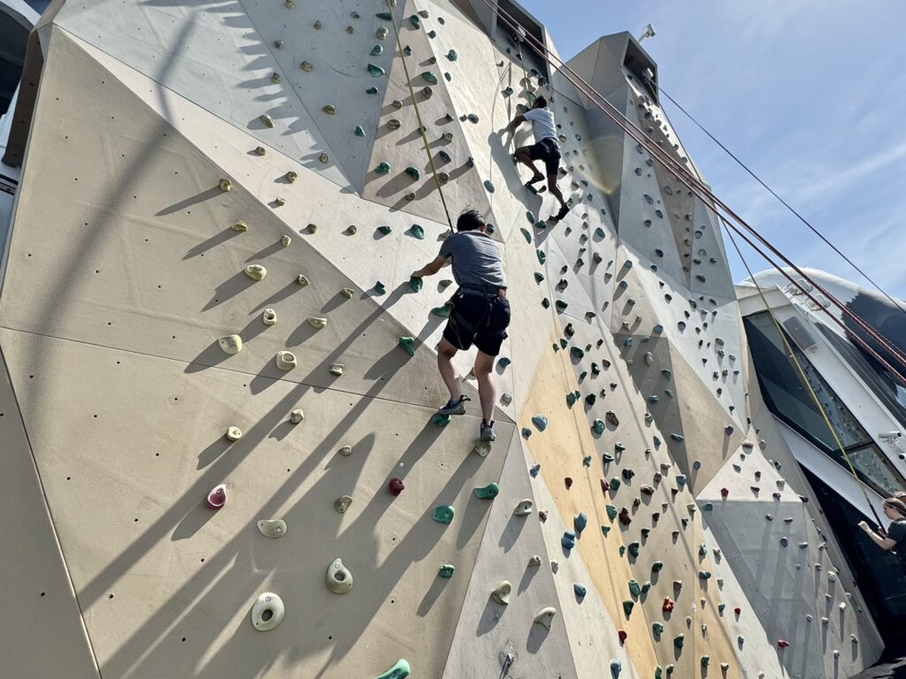 ずっとやってみたかったロッククライミングを、まさかクルーズ船の上でやることになるとは!笑(※無料、事前予約不要)