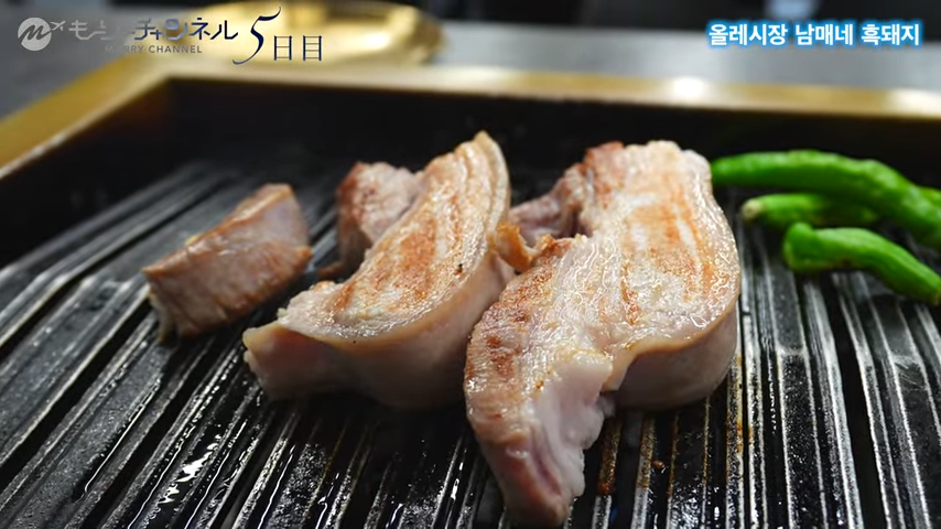 済州島ではオルレ市場を訪れました。市場内で食べるサムギョプサルは、ジューシーで絶品!