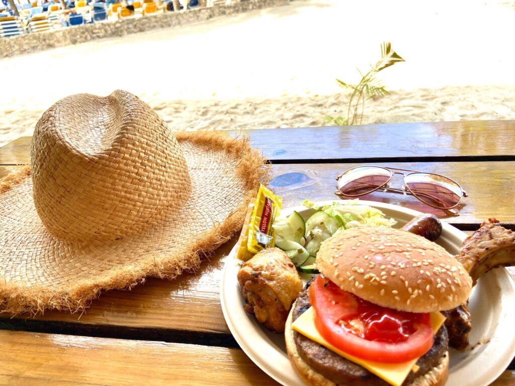 通常寄港地での食事は各自お店などに行くことになりますが、ラバティでは無料でBBQランチも頂けました。