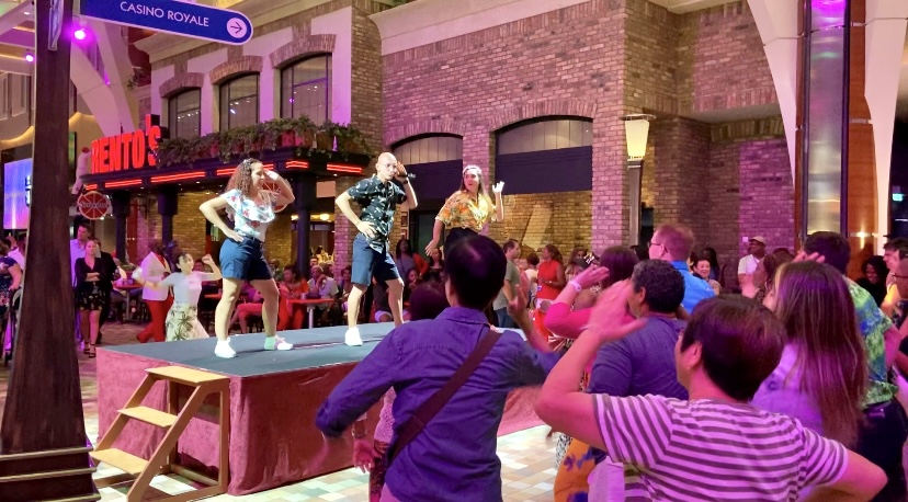 夜な夜なお祭りムードなオアシス・オブ・ザ・シーズ、船内の歩道でもダンスパーティが始まります。