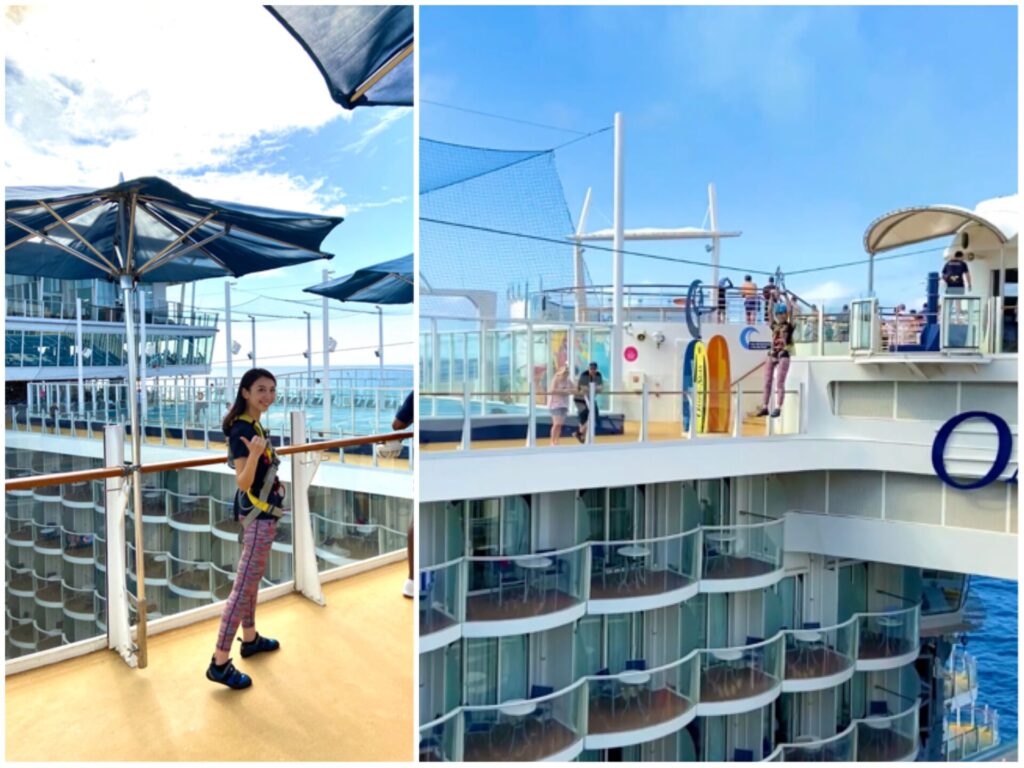 船内の吹き抜けを約25m横切るスリル満点のアクティビティです。