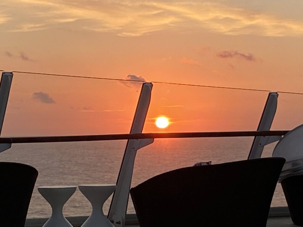 食事や移動や安全面などを考えなくてよいクルーズ船内、精神的にゆとりのある旅行だったからこそ気付けたことは、海の色が日々移り変わっていくこと。