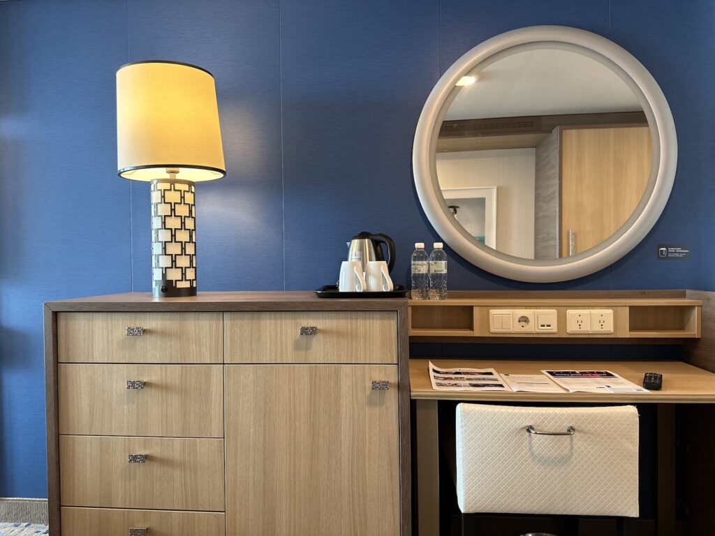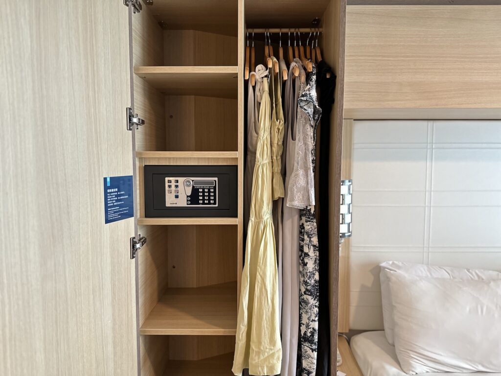 4泊5日でホテル移動がないので、最初に荷ほどきして全部をクローゼットにしまっておけばスーツケースを開けることがないので便利。スーツケースはベッドの下にしまえます。(実はクルーズ終わってから知りました笑)