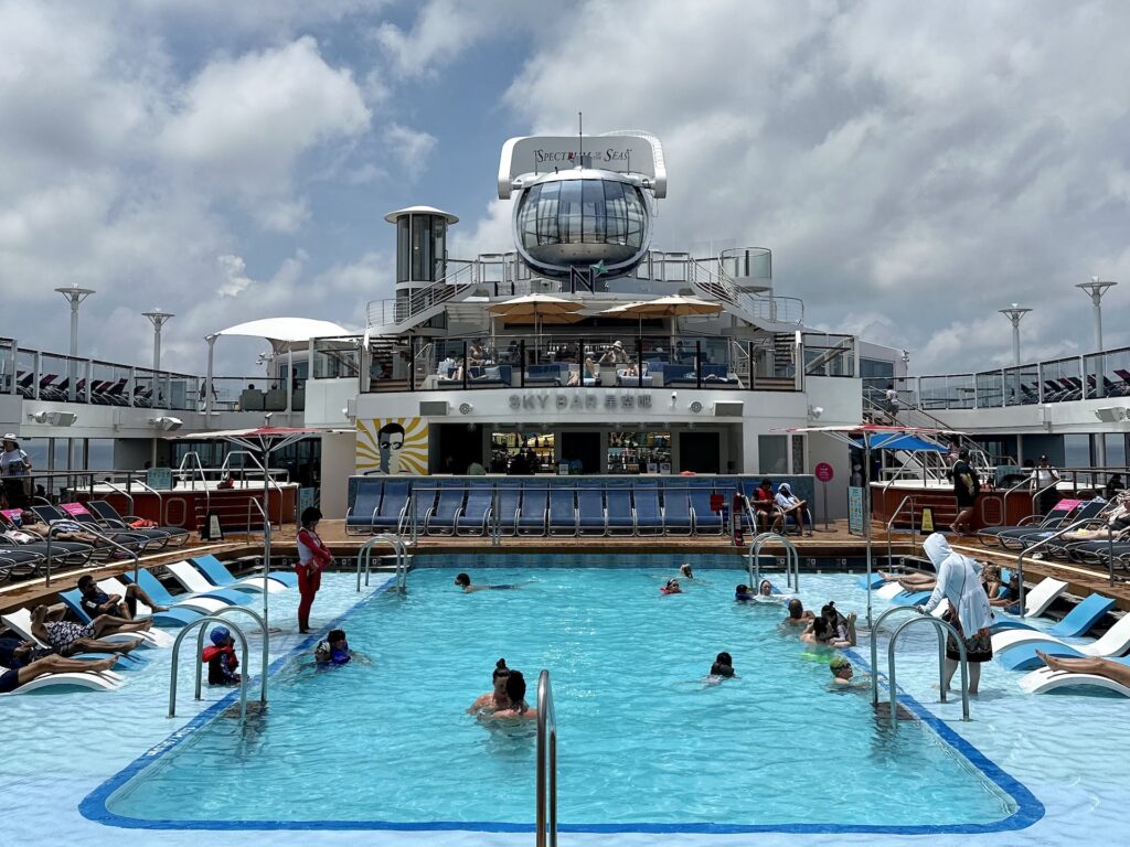 まずは、こちら!このプールを目にした娘は出港前からプールへ。出港時にはここでダンスで盛り上がってクルーズへの期待に胸が高鳴ります。