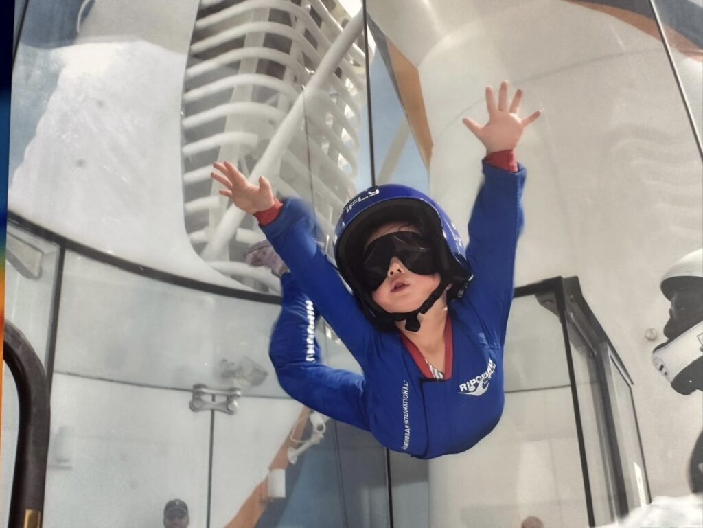 スカイダイビングなんてめったにできない経験がまさか船の上で叶うなんて。スカイダイビングの写真を見て娘が「やりたい!」と言っていたアトラクション。(3歳からできます)
