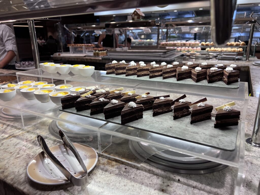 ちなみに、17時半ごろからメインダイニングでお食事をいただき、19時半ごろからショーを見て21時前にビュッフェでデザートを食べるという背徳感満載の夜を過ごすことができました。