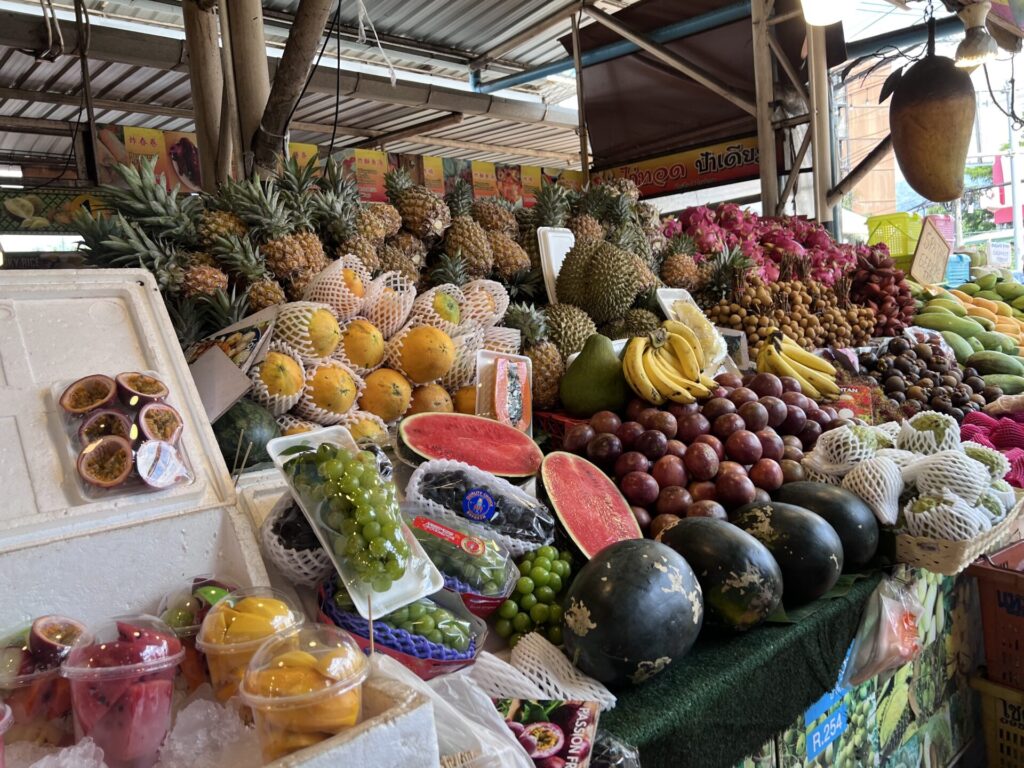 フルーツがたくさん売っていたり屋台のものが食べられたり、タイに来たら一度は寄りたいところ。